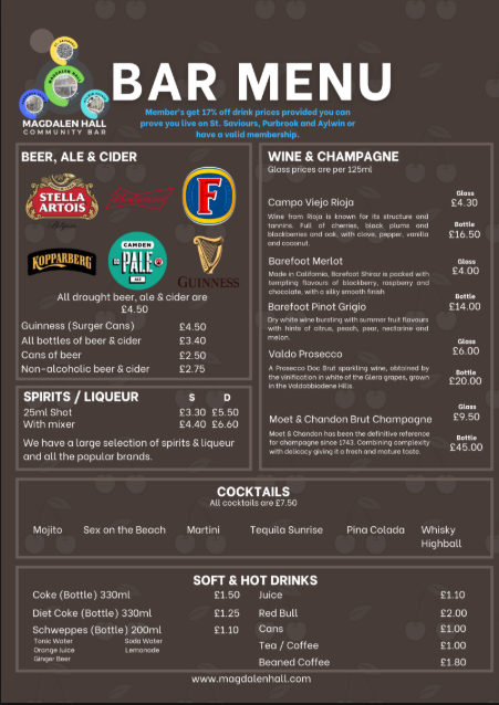 Our community bar is partnered with AB INBEV UK, who supply our draught beers. We have: -