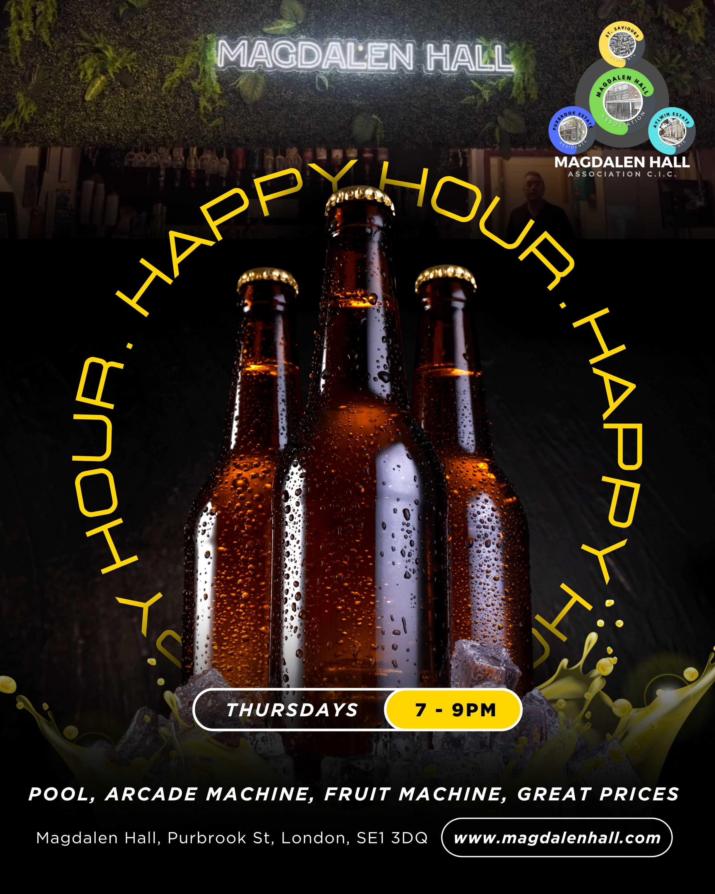 Our prices are at the social club rate. Check out our menu. A price for a beer is £4.50, for a bottle is £3.40.