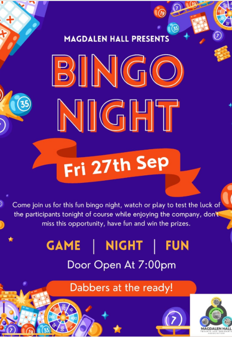 Join us for our Bingo Night on the last Friday of each month at 19:00.
