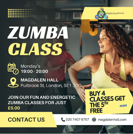 Zumba Classes are now running weekly at Magdalen Hall on Monday's from 19:00 to 20:00.