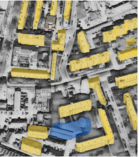 Tenants & Residents who are owners of Magdalen Hall Association marked in yellow. New development marked in blue